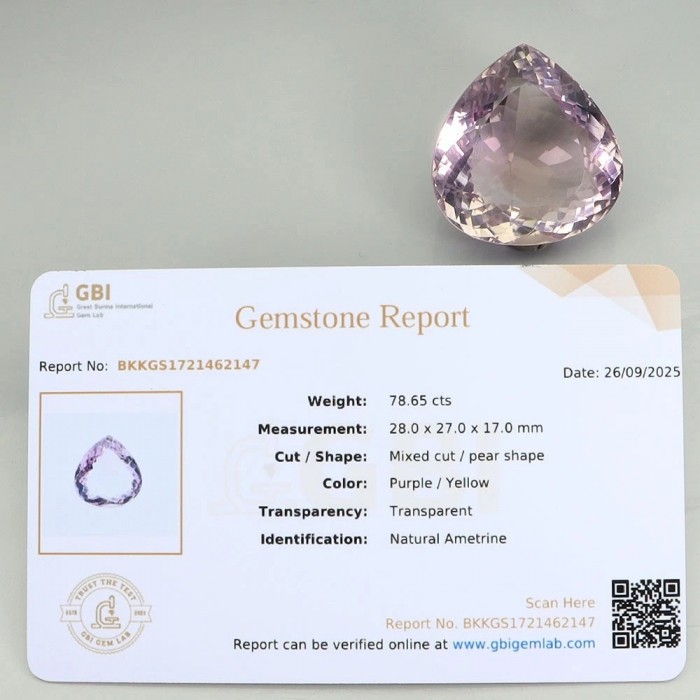 Natural Free Certificate Pear Cut Bi Color Ametrine