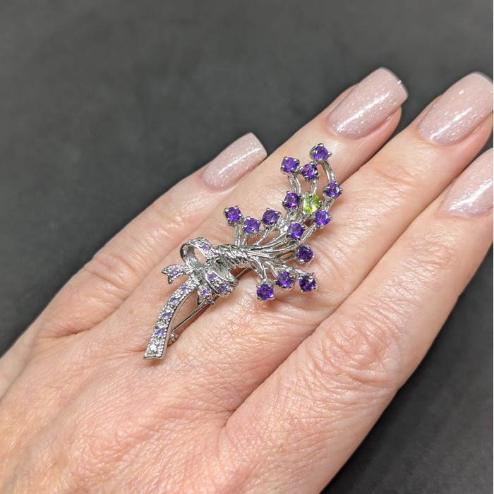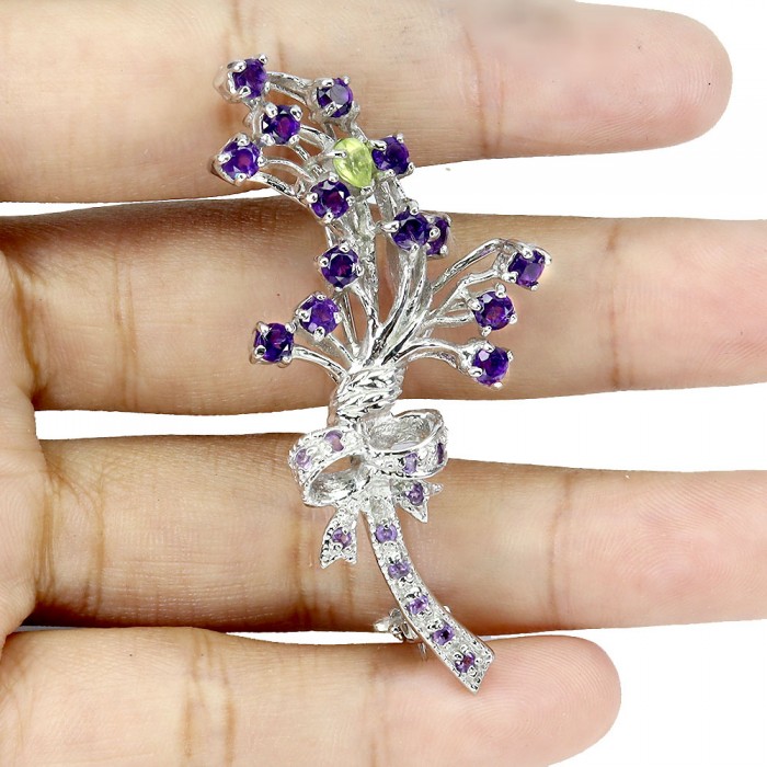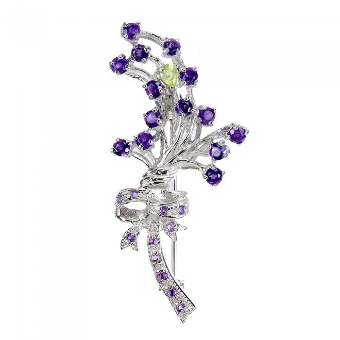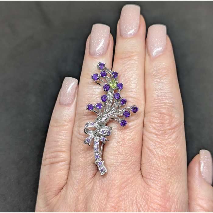П5118Natural Amethyst, Marcasite 38.0 X 27.0 MM.Вага 8.03 гр.Срібло 925 проби покрите білим золотом.Розмір каміння - 1.0 TO 8.0 X 6.0 MM.Чистота - If To Vvs.Обробка - Unheated.Походження - Brazil...