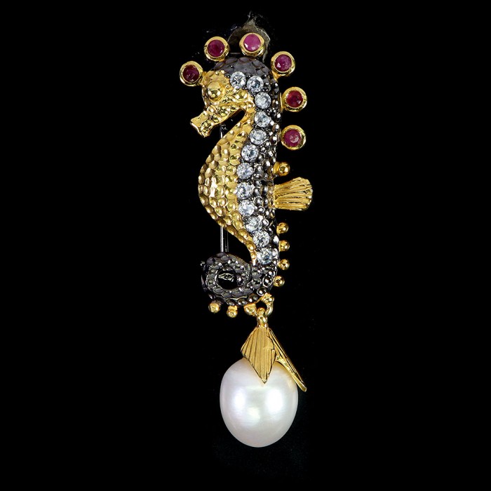 П5758Natural Pearl, Ruby 49.0 X 19.0 MM.Вага 5.26 гр.Срібло 925 проби покрите жовтим золотом і чорним родієм.Розмір каміння - 2.0 TO 3.0 MM.Чистота - Transparent.Обробка - Heated.Походження - Myanmar...