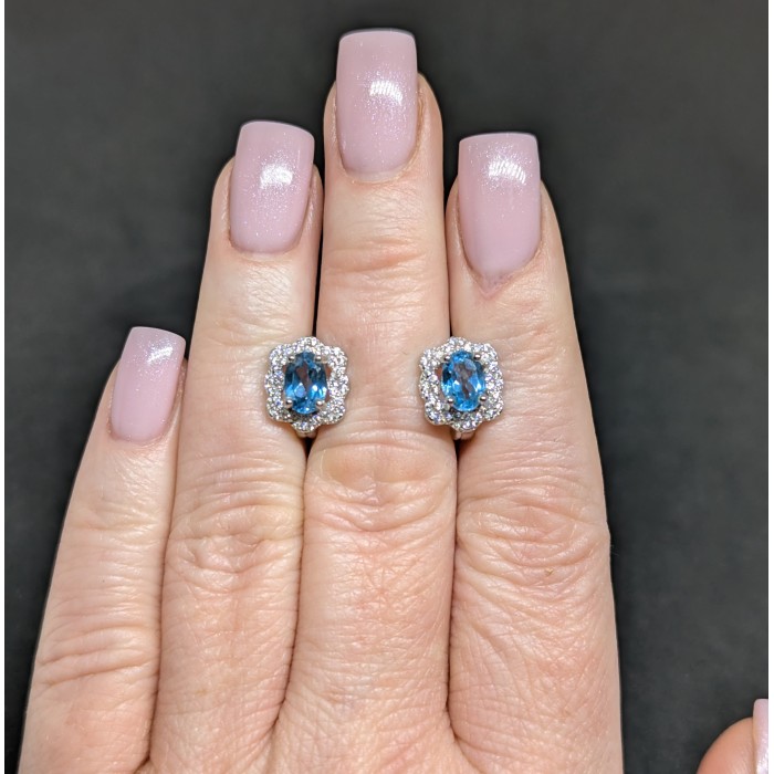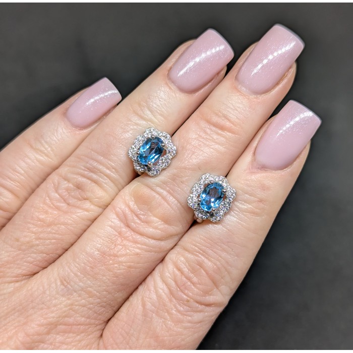 Natural Swiss Blue Topaz & White Cubic Zirconia 10 x 11.4 mm.