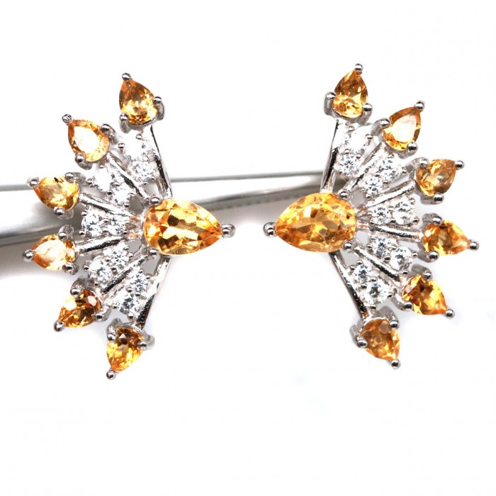 Natural Golden Yellow Citrine & Cubic Zirconia 18 x 26 mm.
