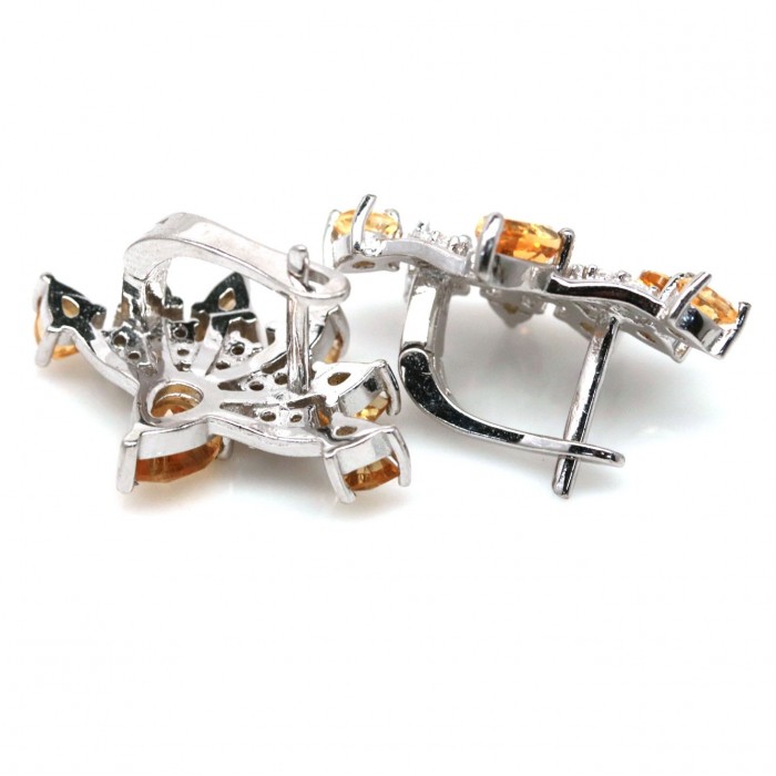 К6289Natural Orange opal 16.0 X 8.0 MM.Розмір 17.35.Вага 2.23 гр.Срібло 925 проби покрите білим золотом.Розмір каміння - 2.0 TO 5.0 X 3.0 MM.Чистота - If.Обробка - Clarity Enhanced.Походження - Ethiopia...