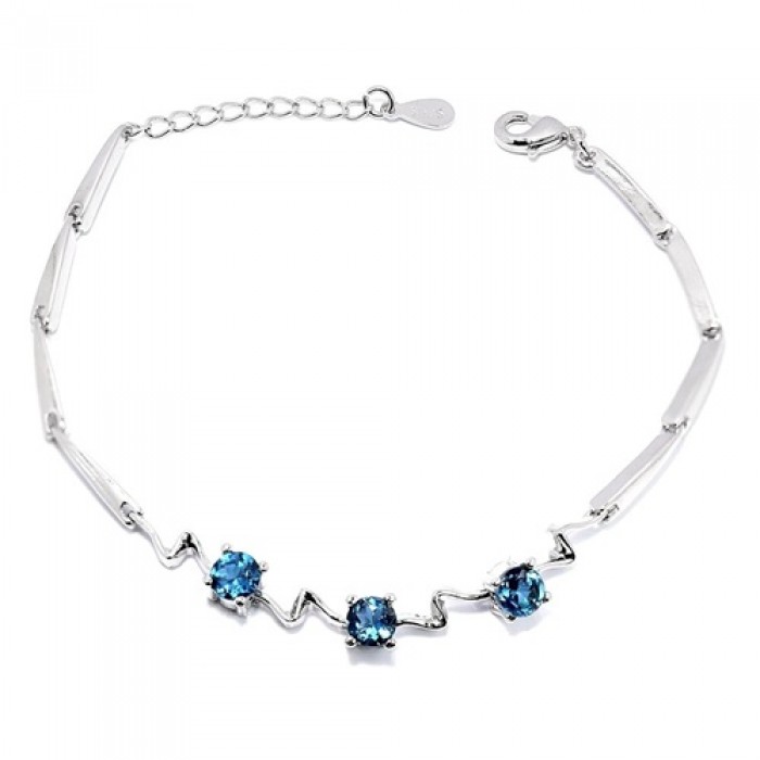 Б2876Natural Iolite Cz 190.0 Х 150.0 X 7.0 MM.Вага 14.4 гр.Срібло 925 проби вкрито білим золотом.Розмір каміння - 4.5 MM., CZ 1.0 MM.Чистота - IF TO VVS.Обробка - UNHEATED.Походження - AFRICA...