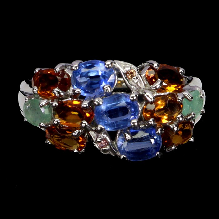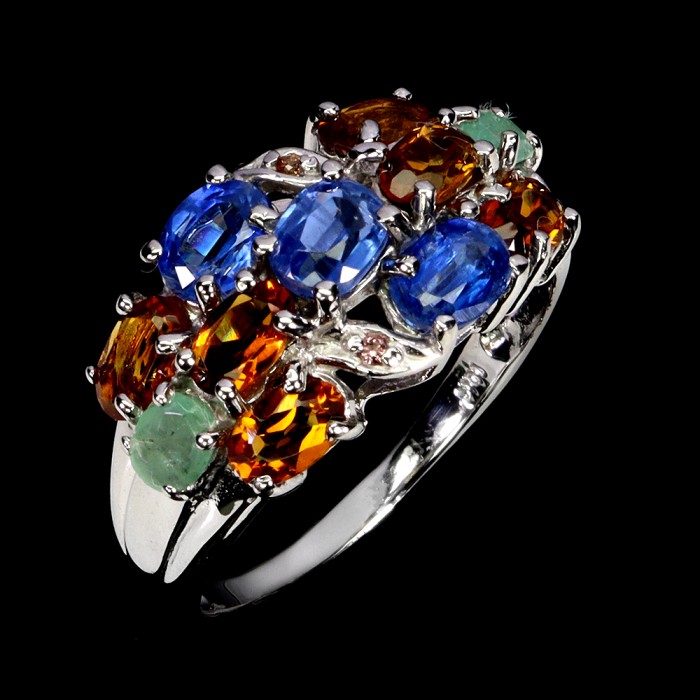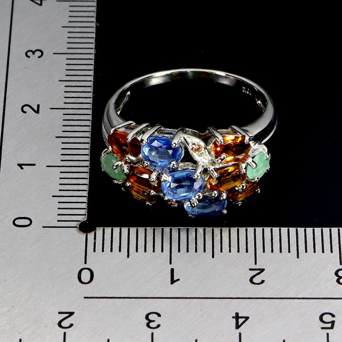 К6011Natural Kyanite, Emerald 29.0 X 18.0 MM.Розмір 17.35.Вага 5.51 гр.Срібло 925 проби покрите білим золотом.Розмір каміння - 2.0 TO 6.0 X 4.0 MM.Чистота - If To Vvs.Обробка - Unheated.Походження - Nepal...