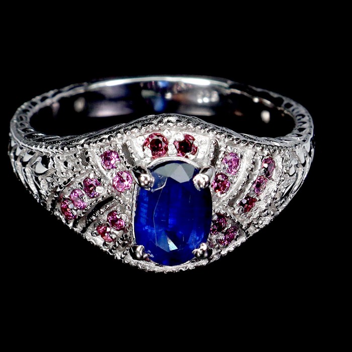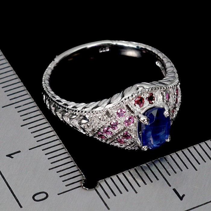 К6042Natural Chrome Diopside, Aquamarine, Rhodolite Garnet, Tanzanite 14.0 X 14.0 MM.Розмір 17.35.Вага 3.59 гр.Срібло 925 проби покрите білим золотом.Розмір каміння - 1.0 TO 7.0 X 5.0 MM.Чистота - If To Vvs.Обробка - Unheated.Походження - Africa...