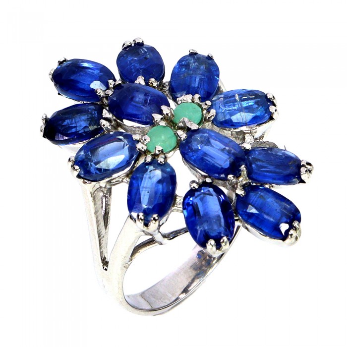 К5992Natural Citrine, Emerald, Kyanite, Sapphire 21.0 X 11.0 MM.Розмір 19.Вага 3.41 гр.Срібло 925 проби покрите білим золотом.Розмір каміння - 1.0 TO 5.0 X 4.0 MM. Чистота - If To Vvs.Обробка - Unheated.Походження - Nepal...