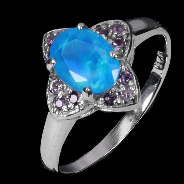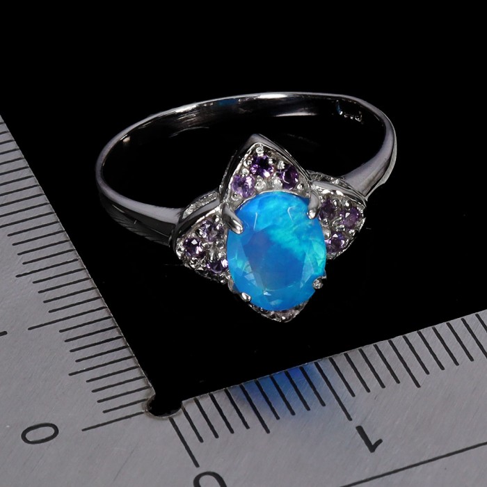 К6021Natural Opal 15.1 x 16.1 mm.Розмір 19.Вага 3,93 гр.Срібло 925 проби покрите білим золотом.Розмір каміння - 4 x 6 - 3.0 mm.Чистота - TRANSPARENT.Обробка - UNHEATED.Походження - ETHIOPIA..