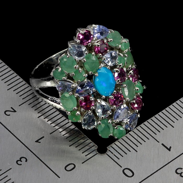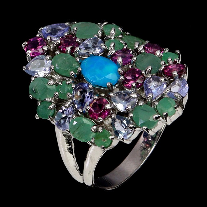 Natural Blue Opal, Emerald, Rhodolite Garnet, Tanzanite 25.0 X 17.0 MM.