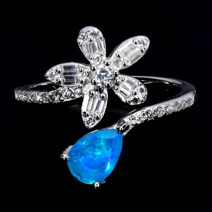 К6027Natural Blue Opal Cz 19.0 X 11.0 MM.Розмір 17.35.Є можливість редагувати розмір.Вага 2.24 гр.Срібло 925 проби покрите білим золотом.Розмір каміння - 7.0 X 5.0 MM., CZ 1.0 TO 2.0 X 1.0 MM. Чистота - If.Обробка - Clarity Enhanced.Походження - Ethiopia...