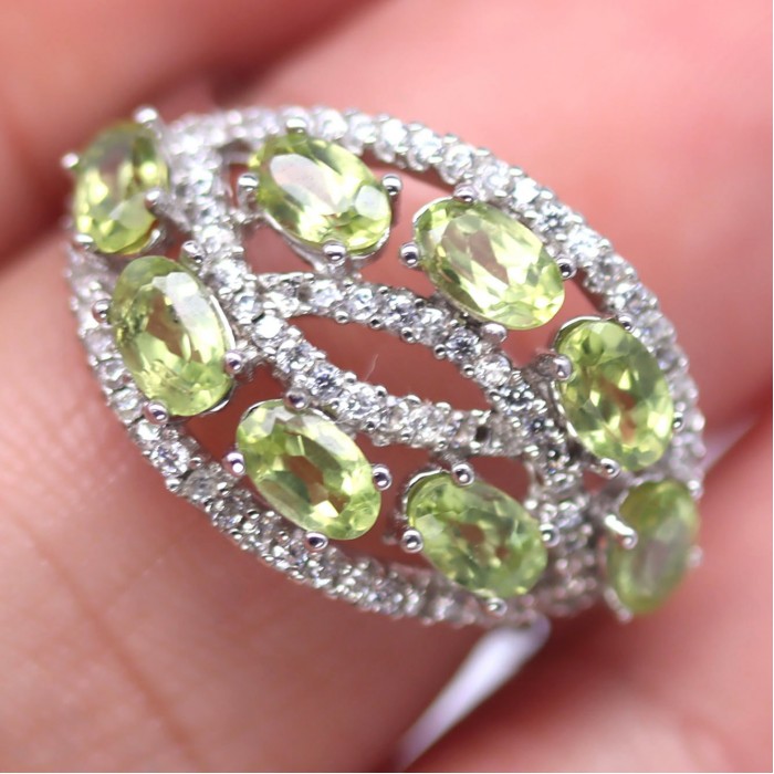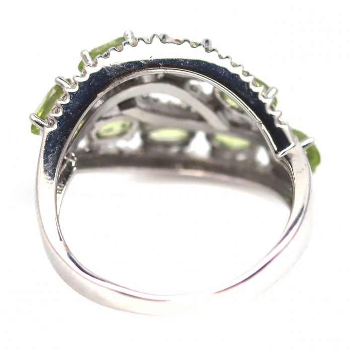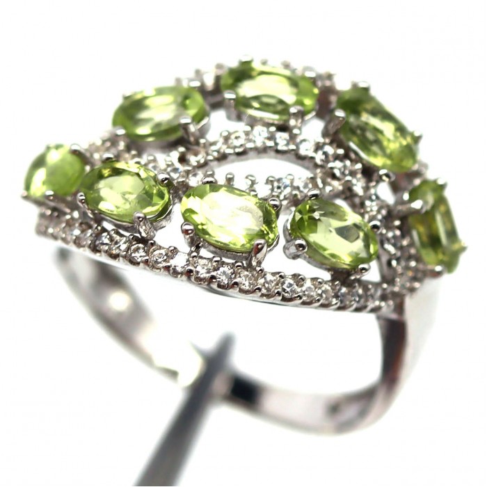 К5912Natural Peridot 21.0 X 10.0 MM.Розмір 17.7.Вага 3.55 гр.Срібло 925 проби покрите білим золотом.Розмір каміння - 2.0 TO 6.0 X 4.0 MM.Чистота - If To Vvs.Обробка - Unheated.Походження - Pakistan...