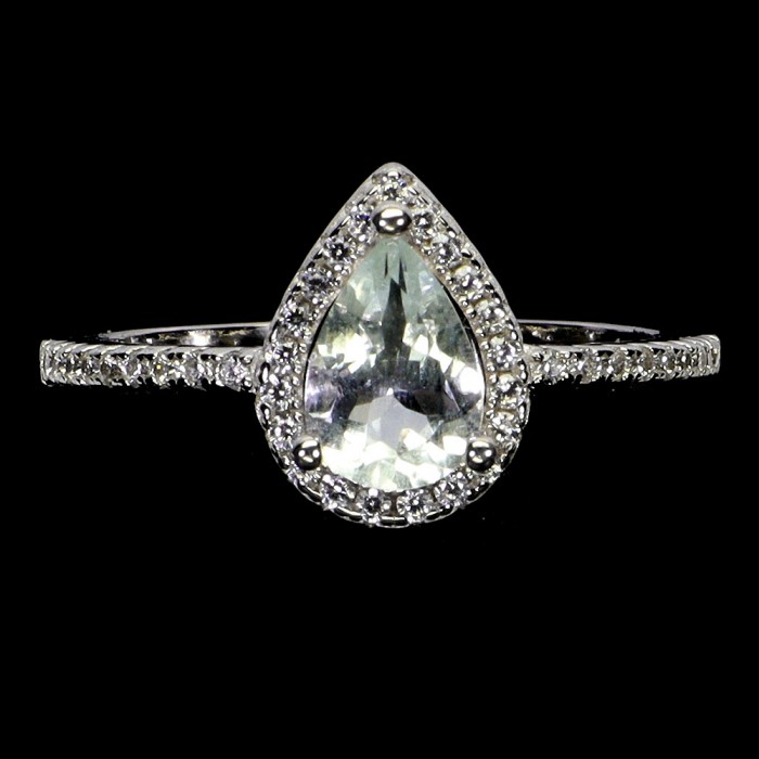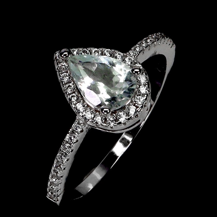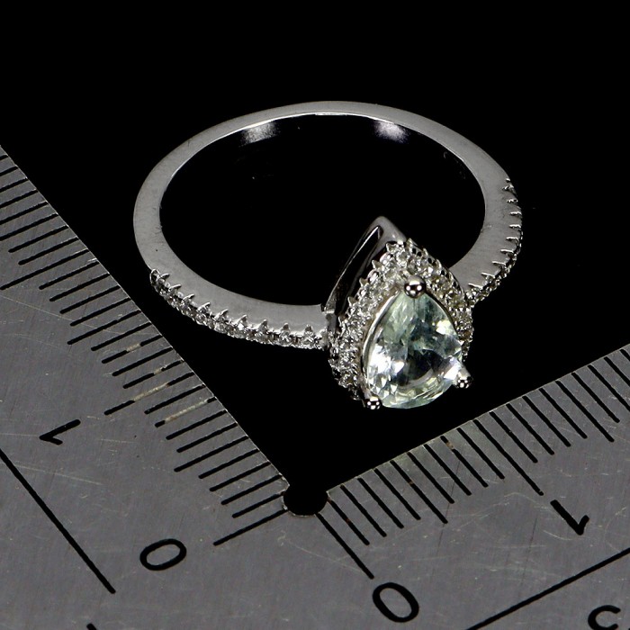 К6810Natural Aquamarine Cz 11.0 X 10.0 MM.Розмір 16.4.Вага 2.31 гр.Срібло 925 проби покрите білим золотом.Розмір каміння - 7.0 X 5.0 MM., CZ 1.5 MM.Чистота - If To Vvs.Обробка - Unheated.Походження - Brazil...