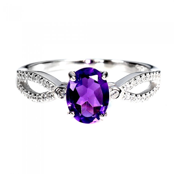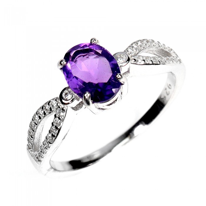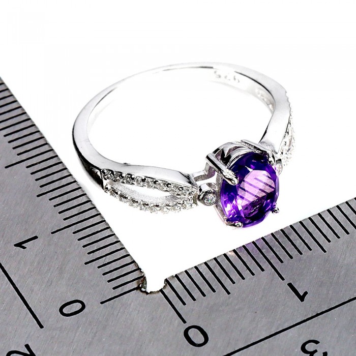 П6818Natural Amethyst Cz 22.0 X 6.0 MM.Вага 0.95 гр.Срібло 925 проби покрите білим золотом.Розмір каміння - 8.0 X 6.0 MM., CZ 1.0 MM.Чистота - If To Vvs.Обробка - Unheated.Походження - Uruguay...