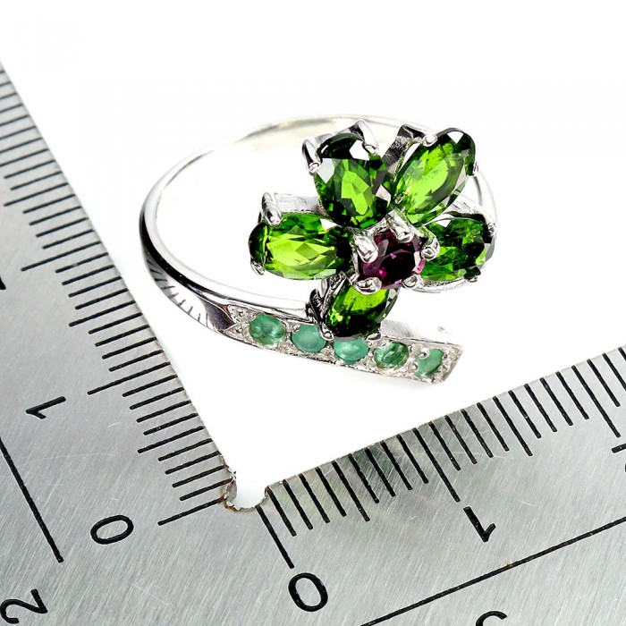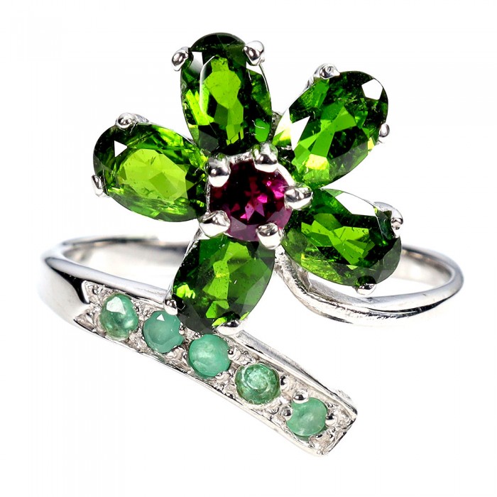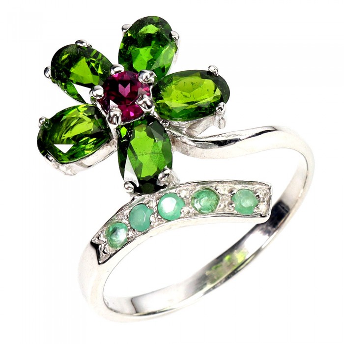 К6683Natural Peridot, Citrine, Emerald 20.0 X 16.0 MM.Розмір 18.Вага 3.83 гр.Срібло 925 проби покрите білим золотом.Розмір каміння - 1.5 TO 6.0 MM. Чистота - If To Vvs.Обробка - Unheated.Походження - Pakistan...