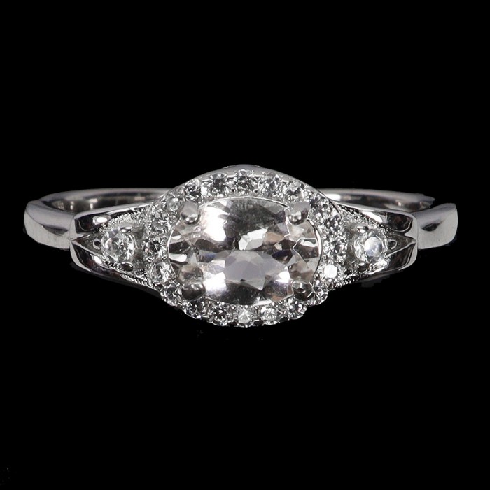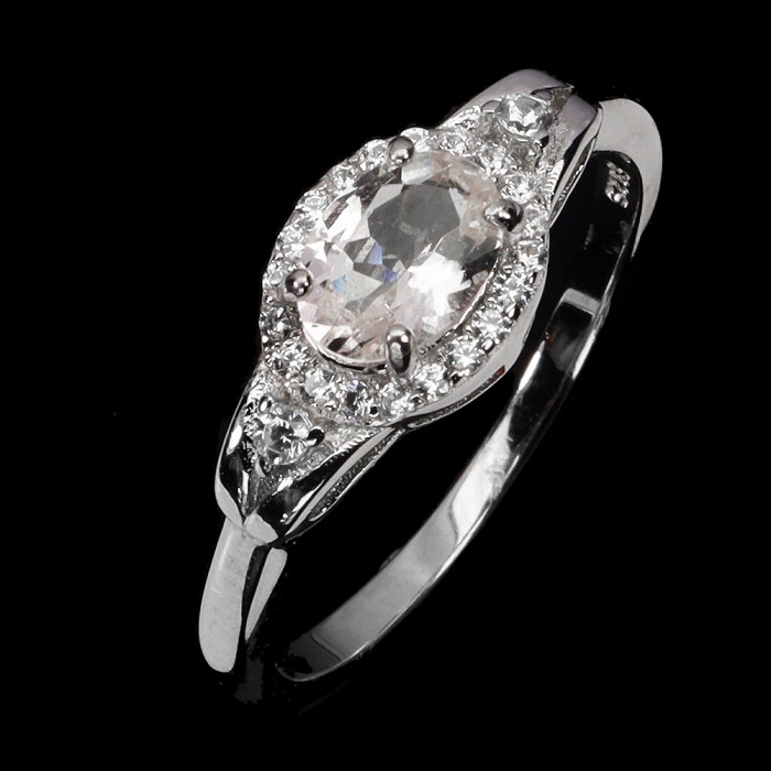 К6405Natural Morganite Cz 9.0 X 7.0 MM.Розмір 16.5.Вага 2.01 гр.Срібло 925 проби покрите білим золотом.Розмір каміння - 7.0 X 5.0 MM., CZ 1.0 MM.Чистота - If To Vvs.Обробка - Unheated.Походження - Madagascar...