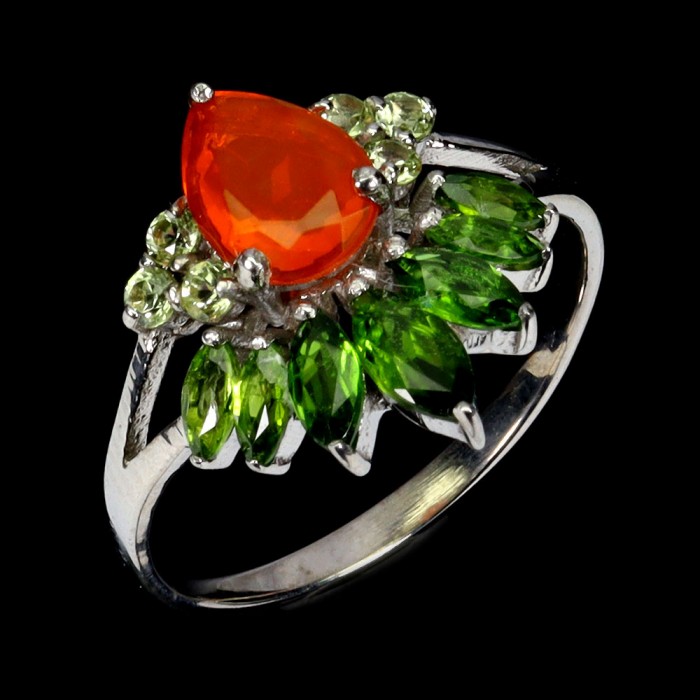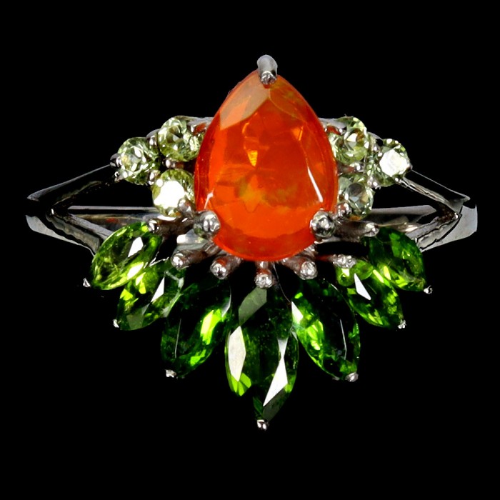 Natural Orange opal, Chrome Diopside, Peridot 16.0 X 14.0 MM.