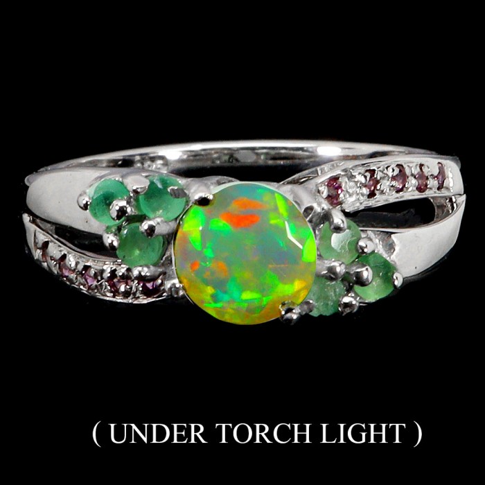 Natural Fire Opal, Emerald, Rhodolite Garnet 20.0 X 6.0 MM.