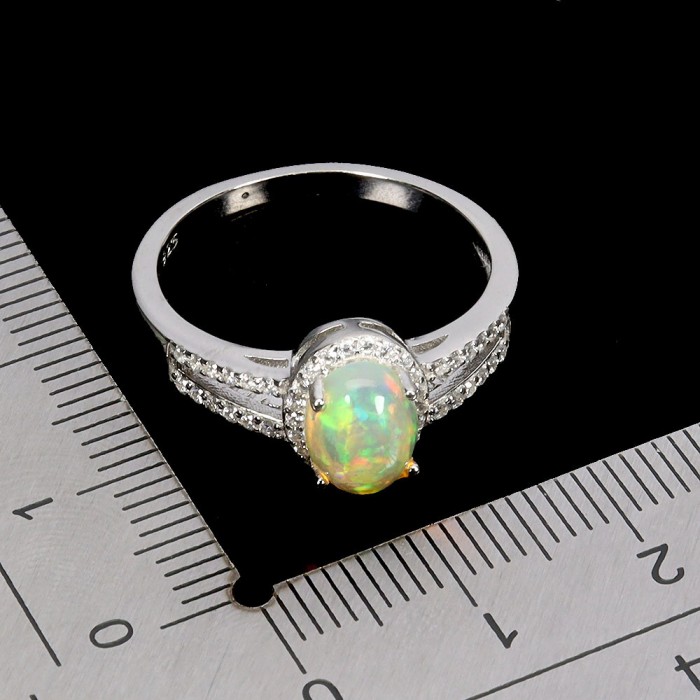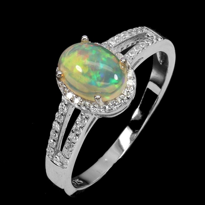 К6186Natural Blue Opal Cz 19.0 X 11.0 MM.Розмір 17.75.Вага 2.25 гр.Є можливість регулювати розмір.Срібло 925 проби покрите білим золотом.Розмір каміння - 7.0 X 5.0 MM., CZ 1.0 TO 2.0 X 1.0 MM.Чистота - If.Обробка - Clarity Enhanced.Походження - Ethiopia...