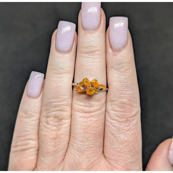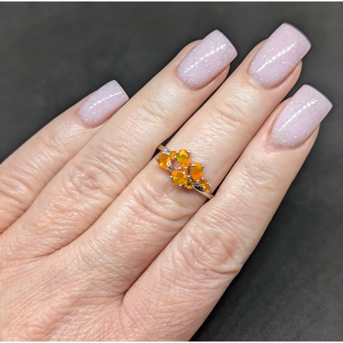 К6289Natural Orange opal 16.0 X 8.0 MM.Розмір 17.35.Вага 2.23 гр.Срібло 925 проби покрите білим золотом.Розмір каміння - 2.0 TO 5.0 X 3.0 MM.Чистота - If.Обробка - Clarity Enhanced.Походження - Ethiopia...