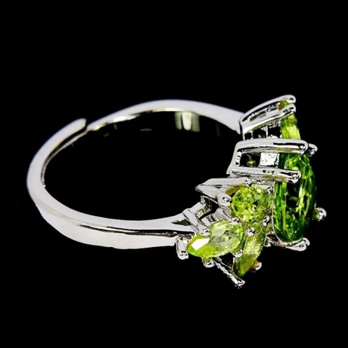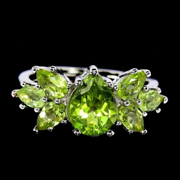 К6729NATURAL AAA APPLE GREEN PERIDOT & WHITE CZ 23 x 13 mm.Розмір 17.5.Вага 2.07 гр.Срібло 925 проби покрите білим золотом.Розмір каміння - 8 x 6 mm.Чистота - IF TO VVS.Обробка - UNHEATED.Походження - PAKISTAN...