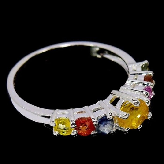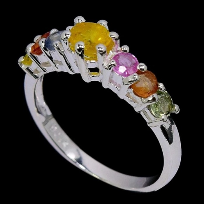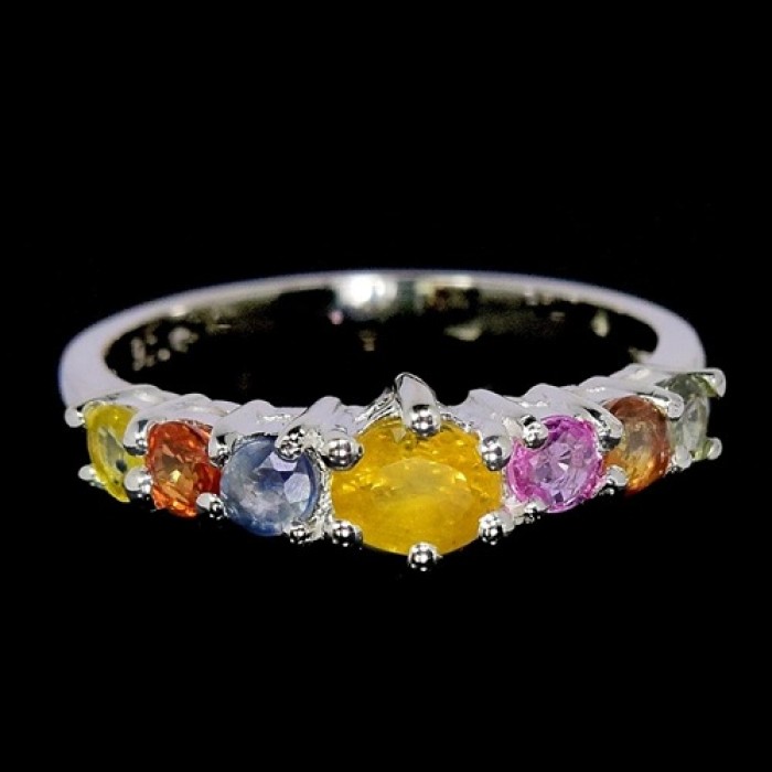 NATURAL MULTI COLOR SAPPHIRE & WHITE CZ 19 x 5 mm.