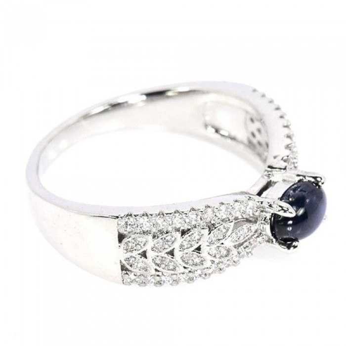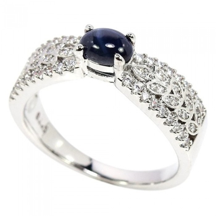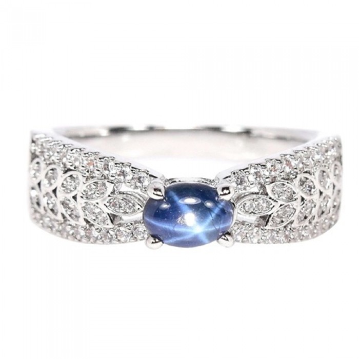 NATURAL AAA 6 RAYS STAR BLUE SAPPHRIE & WHITE CZ 22 x 7 mm.