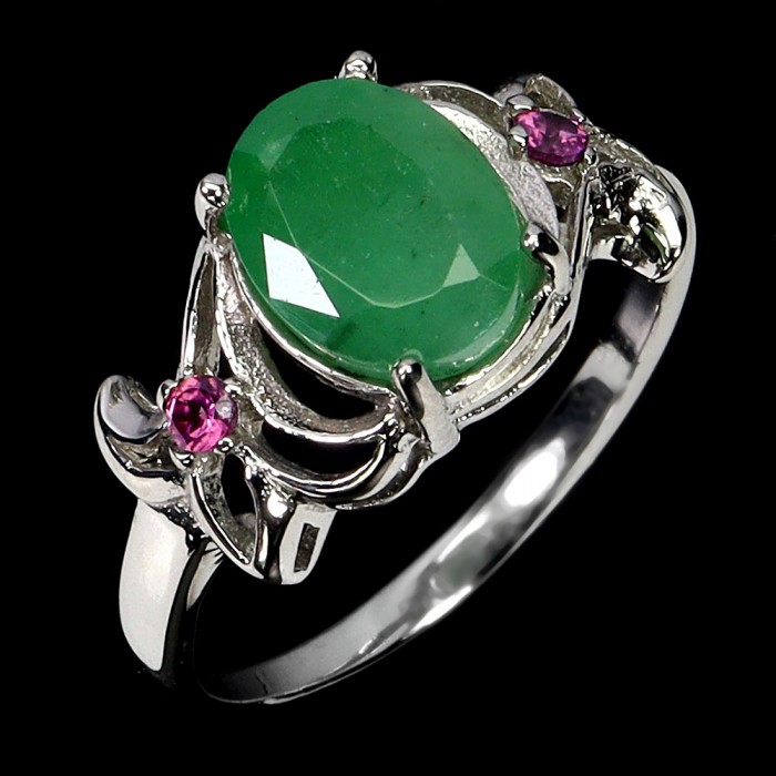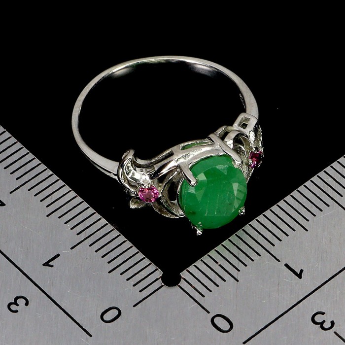 К5748Natural Emerald, Rhodolite Garnet 21.0 X 14.0 MM.Розмір 17.6.Вага 6.49 гр.Срібло 925 проби покрите білим золотом.Розмір каміння - 1.0 TO 6.0 X 4.0 MM.Чистота - Transparent.Обробка - Unheated.Походження - Brazil...