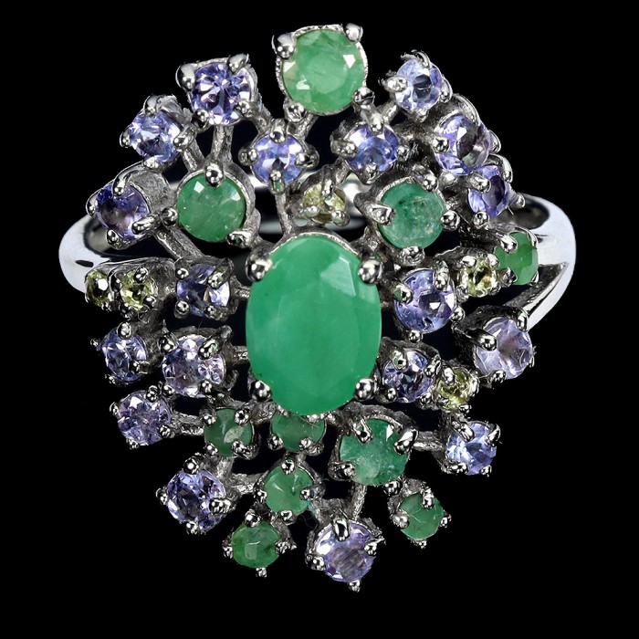 К6581Natural Emerald 18.0 X 14.0 MM.Розмір 18.2.Вага 3.34 гр.Срібло 925 проби покрите білим золотом.Розмір каміння - 5.0 X 3.0 TO 6.0 X 4.0 MM.Чистота - Transparent.Обробка - Unheated.Походження - Brazil...