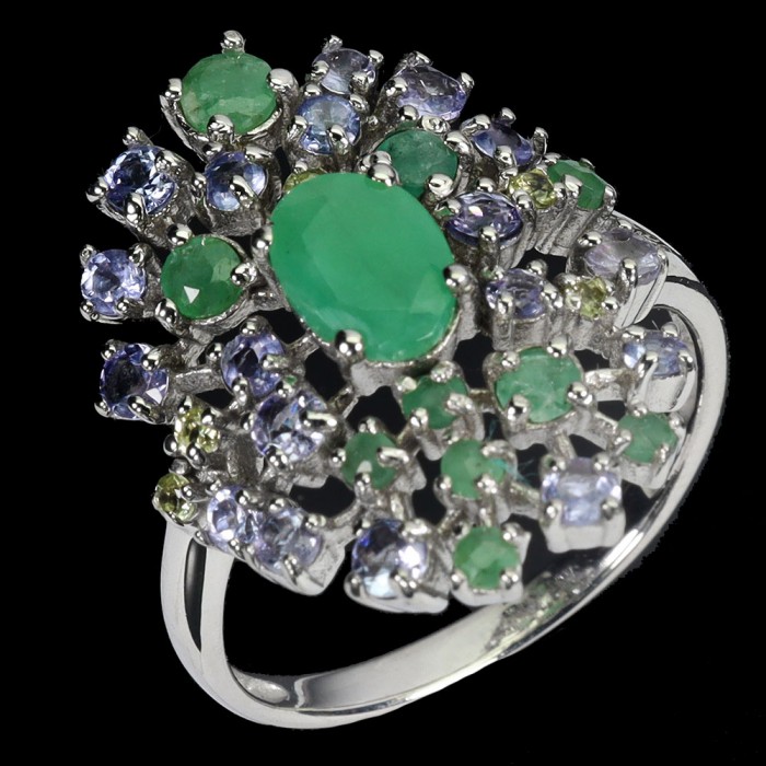 К6602Natural Rhodolite Garnet, Chrome Diopside, Emerald 19.0 X 19.0 MM.Розмір 17.5.Вага 3.9 гр.Срібло 925 проби покрите білим золотом.Розмір каміння - 1.0 TO 4.0 X 3.0 MM.Чистота - If To Vvs.Обробка - Unheated.Походження - Africa...