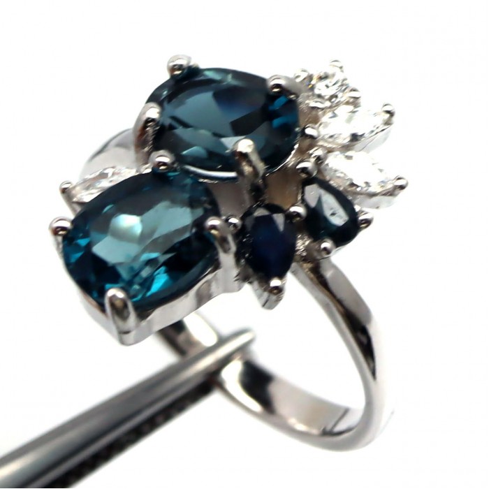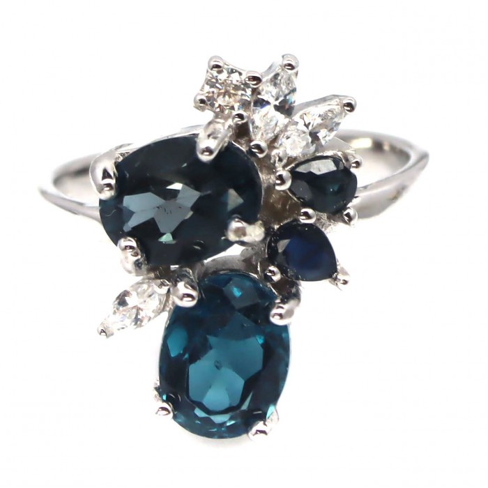 Natural London Blue Topaz, Sapphire & Cubic Zirconia 13.2 x 18.8 mm.
