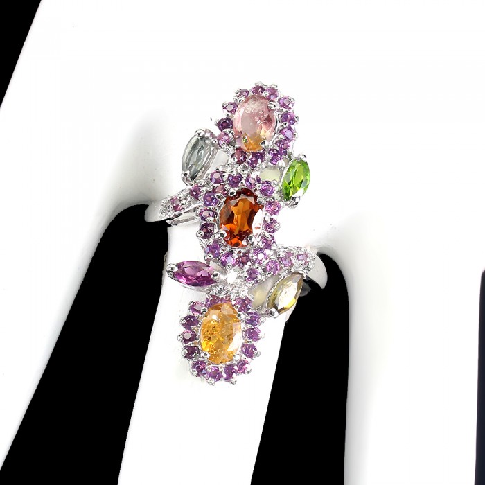 К6600Natural Peridot 20.0 X 10.0 MM.Розмір 17.5.Вага 5.3 гр.Срібло 925 проби покрите білим золотом.Розмір каміння - 7.0 X 5.0 MM.Чистота - If To Vvs.Обробка - Unheated.Походження - Pakistan...