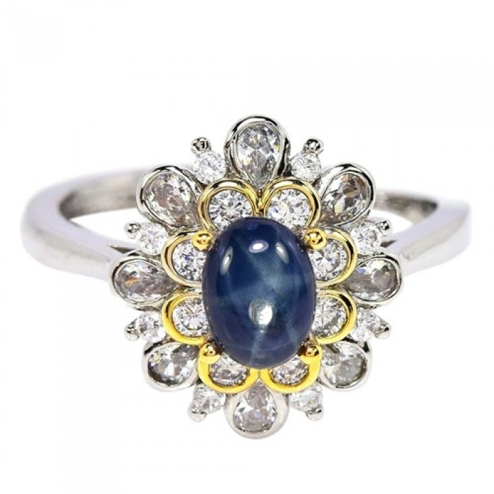 NATURAL AAA 6 RAYS STAR BLUE SAPPHIRE & CZ 14 x 15 mm.