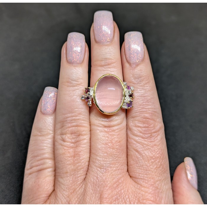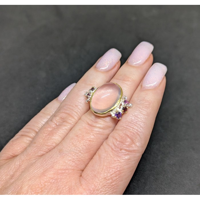 Handmade! Natural Rose Quartz Amethyst Rhodolite 26.0 Х 19.0 ММ.