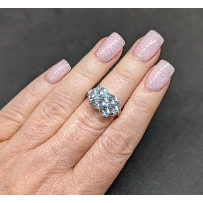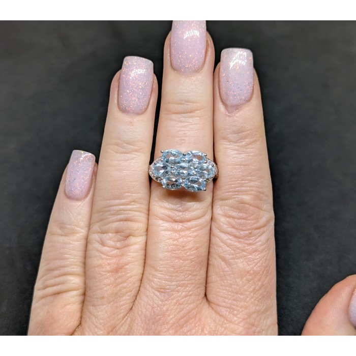 К5811Natural Aquamarine, Rhodolite Garnet, Sapphire 19.0 X 17.0 MM.Розмір 17.35.Вага 3.69 гр.Срібло 925 проби покрите білим золотом.Розмір каміння - 1.0 TO 6.0 X 4.0 MM. Чистота - If To Vvs.Обробка - Unheated.Походження - Africa...