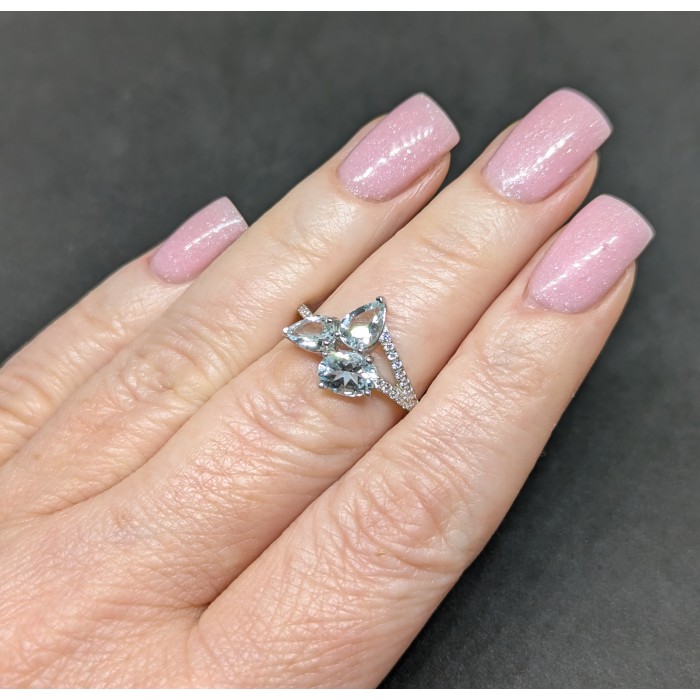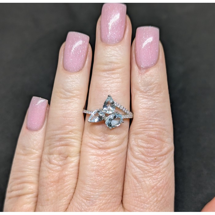 К6075Natural Aquamarine, Chrome Diopside, Emerald, Sapphire 20.0 X 11.0 MM.Розмір 19.Вага 3.4 гр.Срібло 925 проби покрите білим золотом.Розмір каміння - 1.0 TO 5.0 X 4.0 MM.Чистота - If To Vvs.Обробка - Unheated.Походження - Brazil...