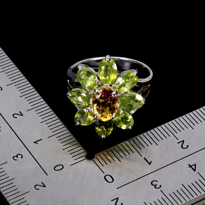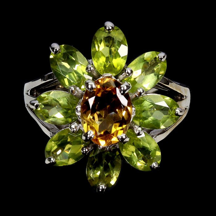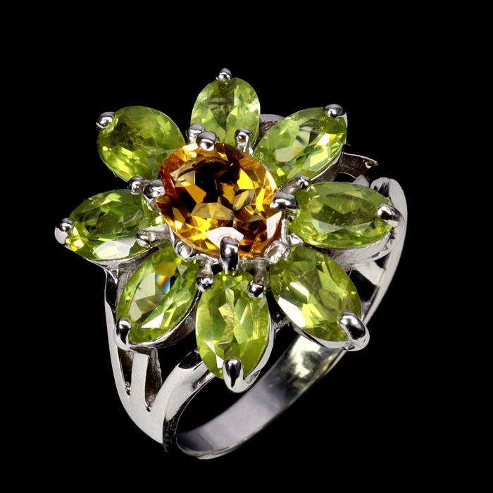 К5820Natural Peridot Cz 14.0 X 11.0 MM.Розмір 16.5.Вага 2.96 гр.Срібло 925 проби покрите білим золотом.Розмір каміння - 1.0 TO 10.0 X 7.0 MM. Чистота - If To Vvs.Обробка - Unheated.Походження - Pakistan...
