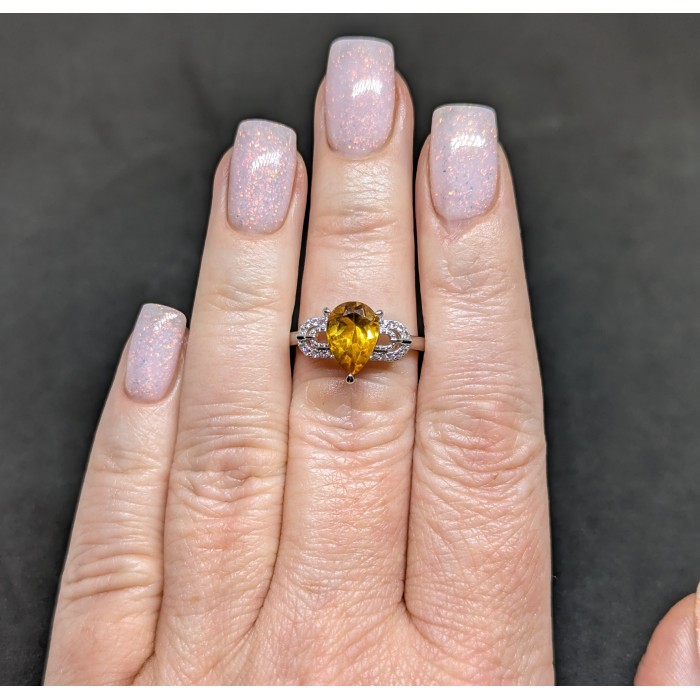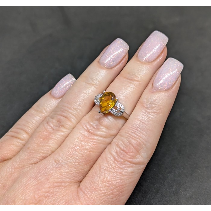 К5851Natural Citrine Cz 17.0 X 10.0 MM.Розмір 17.35.Вага 3.88 гр.Срібло 925 проби покрите білим золотом.Розмір каміння - 1.0 TO 12.0 X 8.0 MM.Чистота - If To Vvs.Обробка - Unheated.Походження - Brazil...
