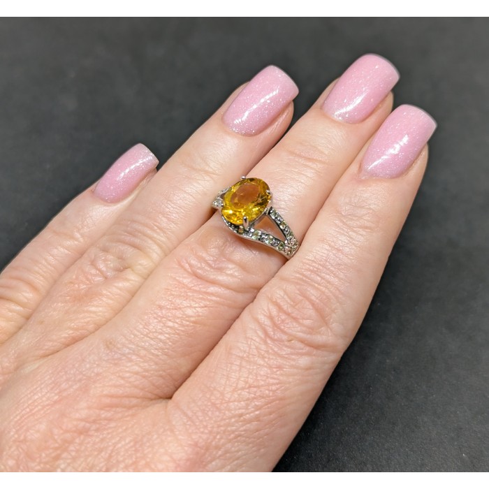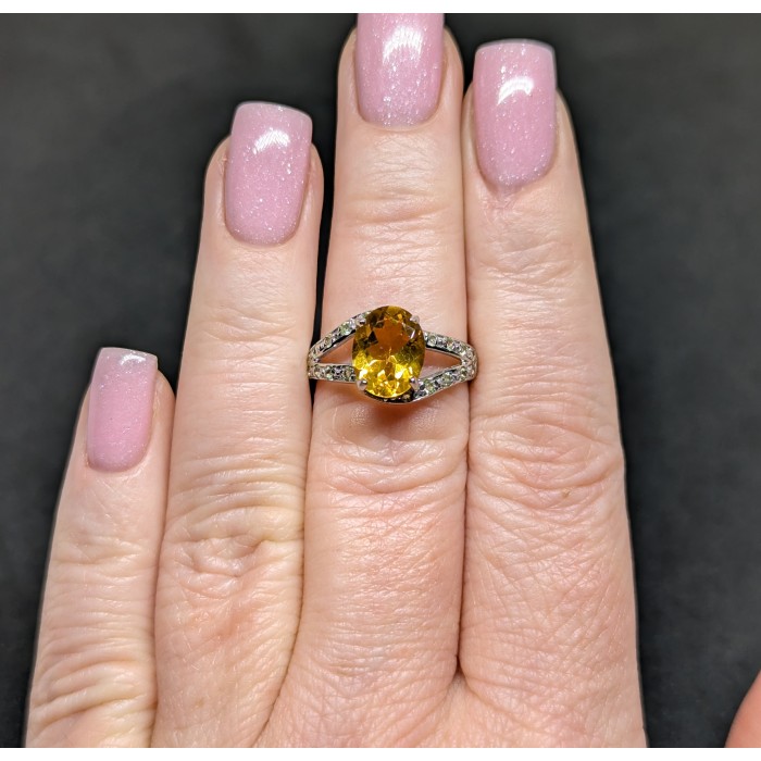 К6128Natural Citrine, Peridot 19.0 X 10.0 MM.Розмір 17.35.Вага 2.87 гр.Срібло 925 проби покрите білим золотом.Розмір каміння - 1.0 TO 9.0 X 7.0 MM.Чистота - If To Vvs.Обробка - Unheated.Походження - Brazil...