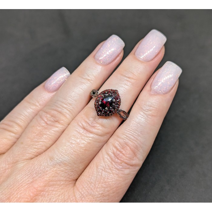 К5307Natural Mozambique Garnet 22.0 X 13.0 MM.Розмір 18.2.Вага 4.15 гр.Срібло 925 проби покрите білим золотом.Розмір каміння - 8.0 X 6.0 TO 12.0 X 8.0 MM.Чистота - If To Vvs.Обробка - Unheated.Походження - Africa...