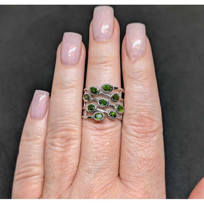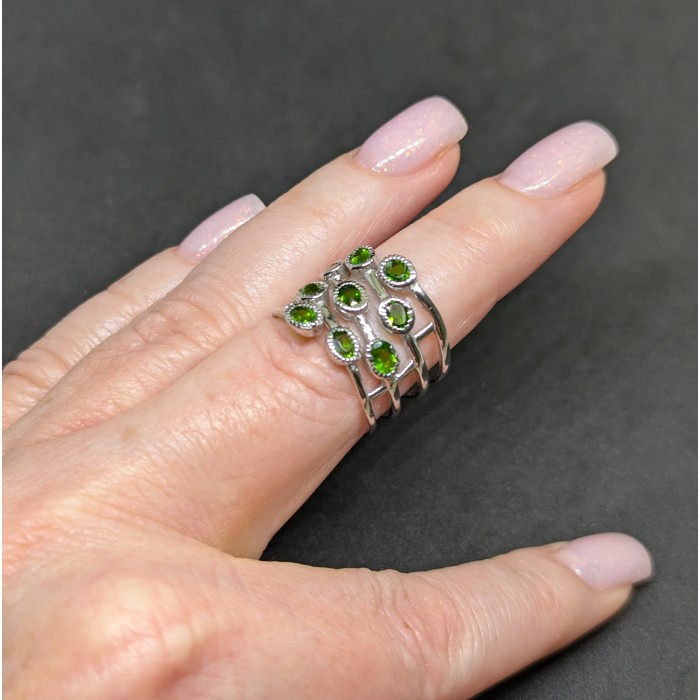 К5993Natural Chrome Diopside, Kyanite 20.0 X 18.0 MM.Розмір 17.35.Вага 8.27 гр.Срібло 925 проби покрите білим золотом.Розмір каміння - 6.0 X 4.0 TO 8.0 X 6.0 MM.Чистота - If To Vvs.Обробка - Unheated.Походження - Africa...