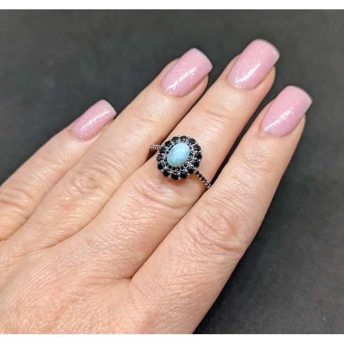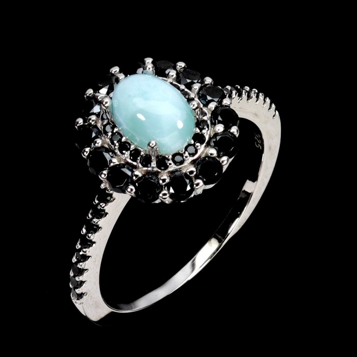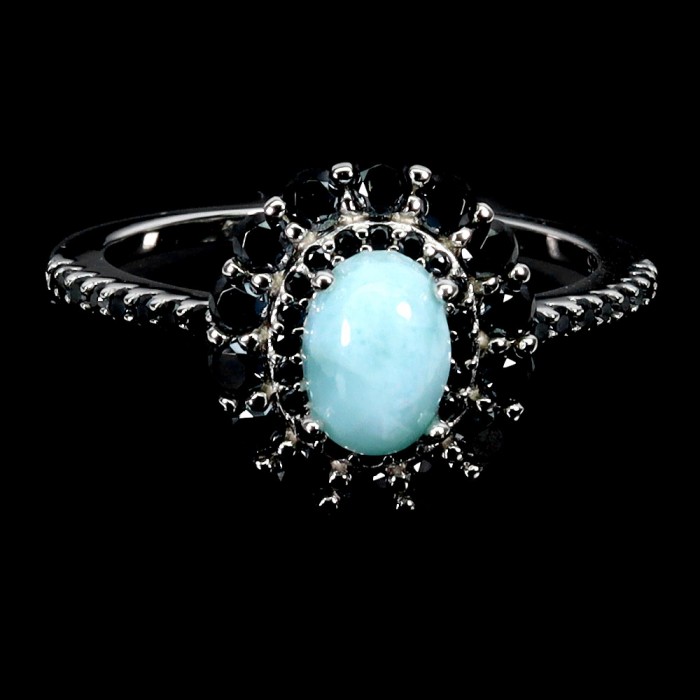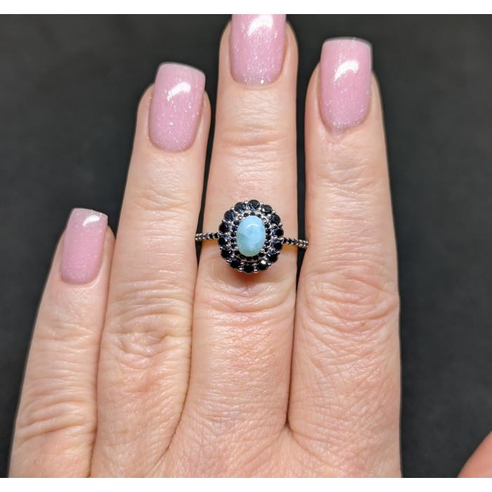Natural Larimar, Black Spinel 21.0 X 14.0 MM.