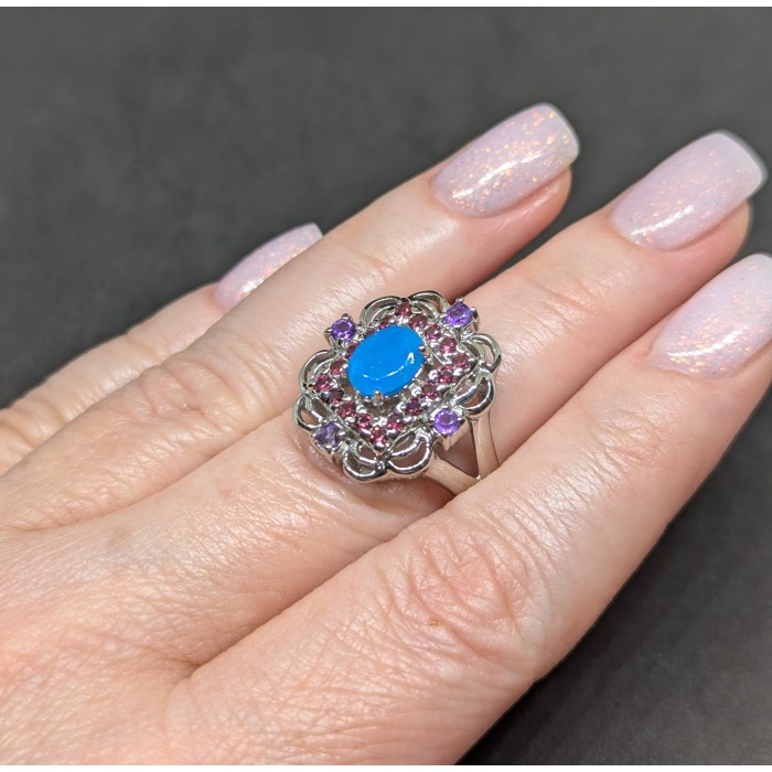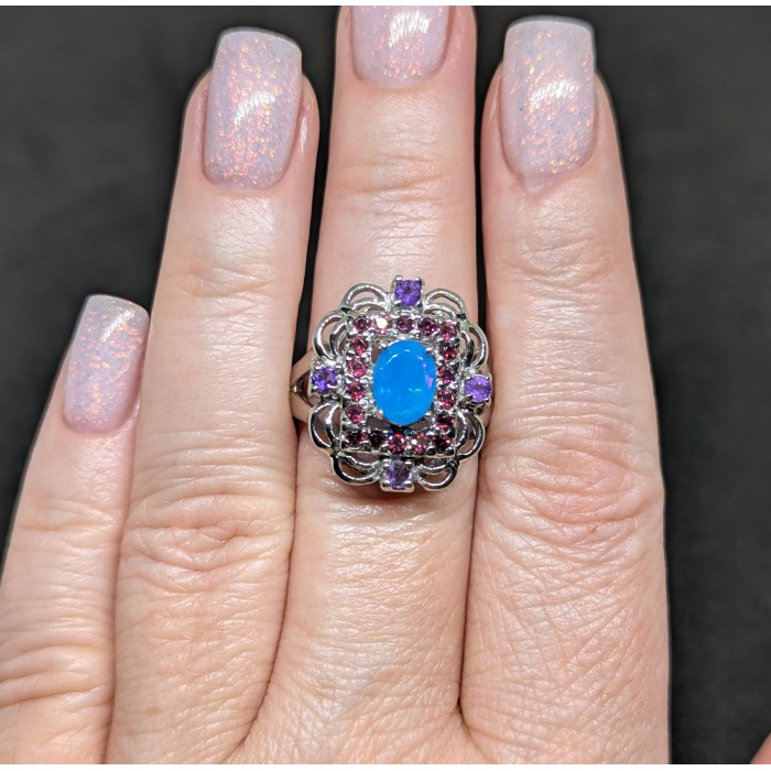 Natural Blue Opal, Amethyst, Rhodolite Garnet 20.0 X 17.0 MM.