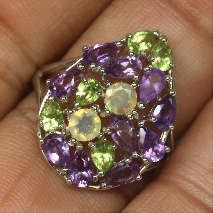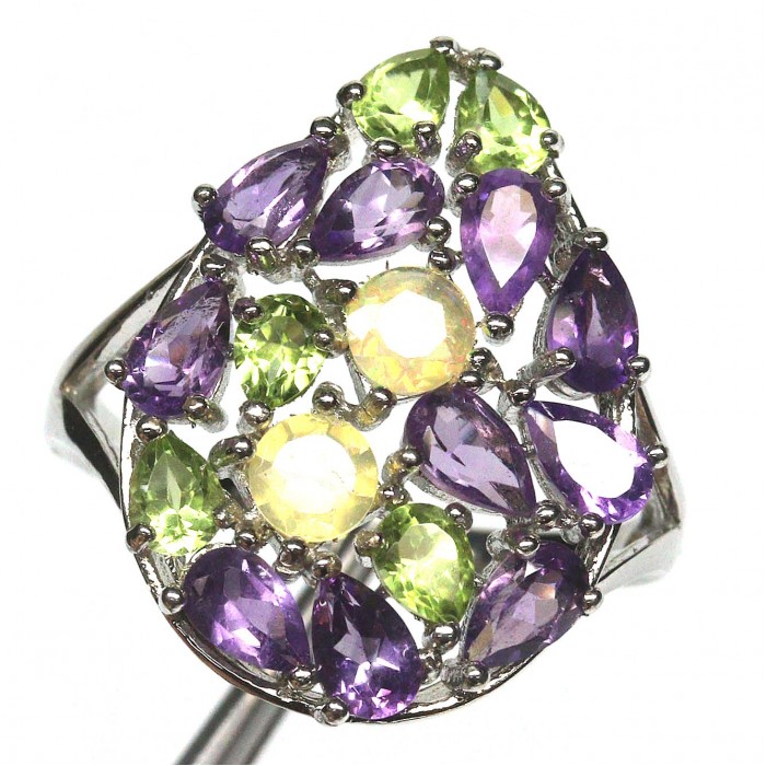 С5951Natural Multicolor Opal, Amethyst & Sapphire 18.0 x 23.0 mm.Вага 7,11 гр.Срібло 925 проби покрите білим золотом.Розмір каміння - 4.0 - 3.0 x 4.0 mm.Чистота - TRANSPARENT & IF TO VVS & OPAQUE.Обробка - UNHEATED & HEATED.Походження - ETHIOPIA & BRAZIL & AFRICA...