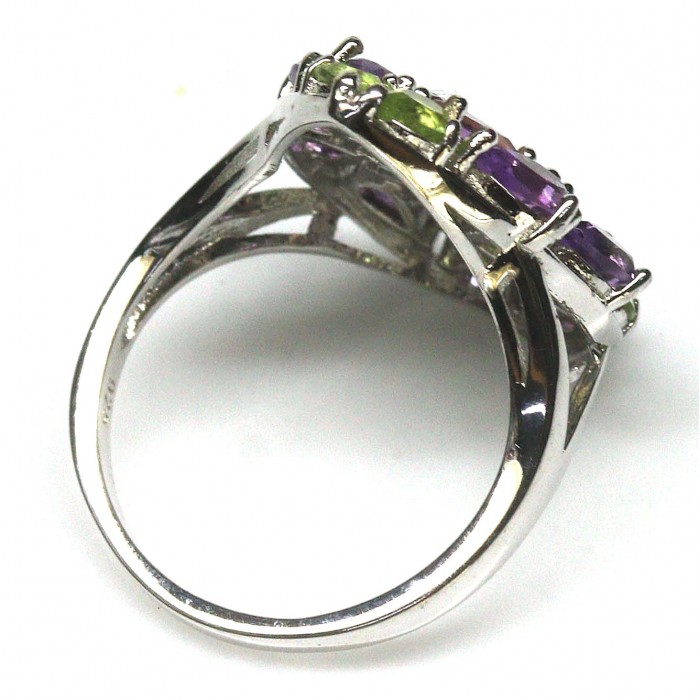 К5748Natural Emerald, Rhodolite Garnet 21.0 X 14.0 MM.Розмір 17.6.Вага 6.49 гр.Срібло 925 проби покрите білим золотом.Розмір каміння - 1.0 TO 6.0 X 4.0 MM.Чистота - Transparent.Обробка - Unheated.Походження - Brazil...