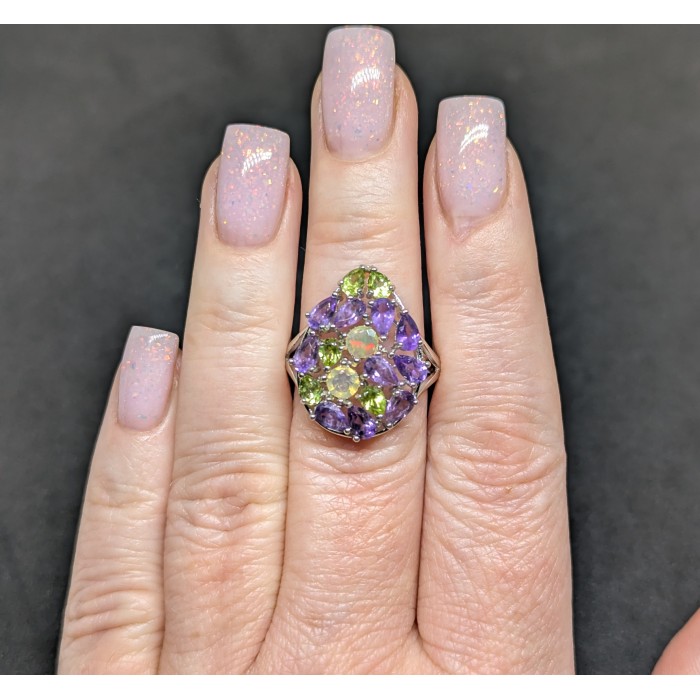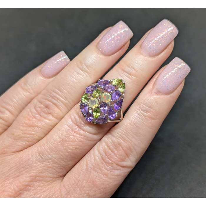 Natural Multicolor Opal, Amethyst & Peridot 18.2 x 23.0 mm.