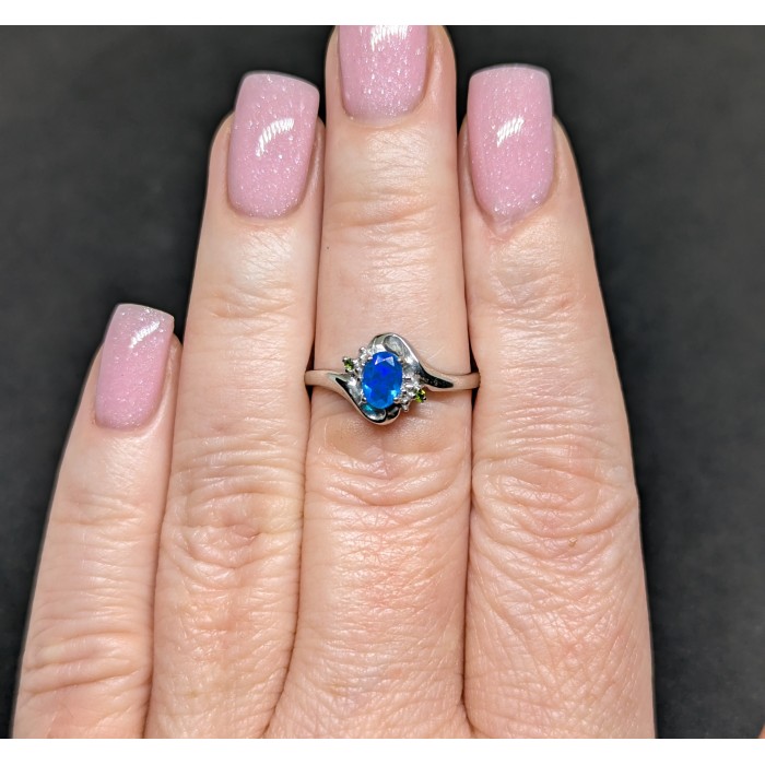 К2258NATURAL BLUE SAPPHIRE & WHITE CZ 12 x 13 mm.Розмір 17.5.Вага 2.96 гр.Срібло 925 проби покрите білим золотом.Розмір каміння - 9 x 7.1 x 4.8 mm.Чистота - OPAQUE.Обробка - HEATED.Походження - AFRICA...