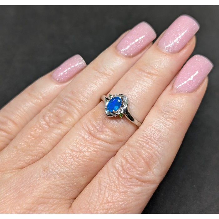 К5974Natural Blue Opal, Amethyst, Tanzanite 19.0 X 15.0 MM.Розмір 18.6.Вага 4.06 гр.Срібло 925 проби покрите білим золотом.Розмір каміння - 1.5 TO 7.0 X 5.0 MM.Чистота - If.Обробка - Clarity Enhanced.Походження - Ethiopia...
