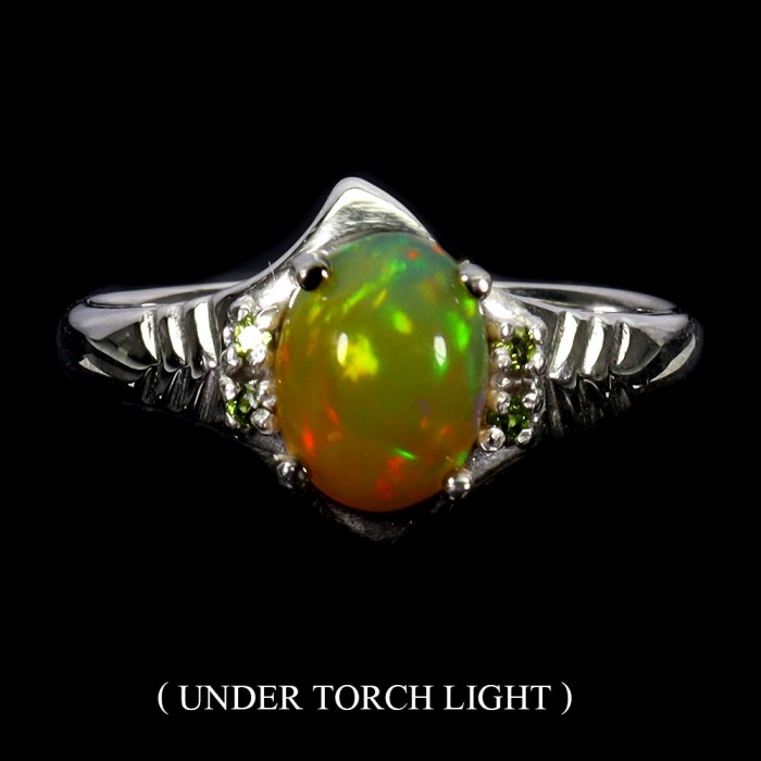 Natural Fire Opal, Chrome Diopside 19.0 X 11.0 MM.