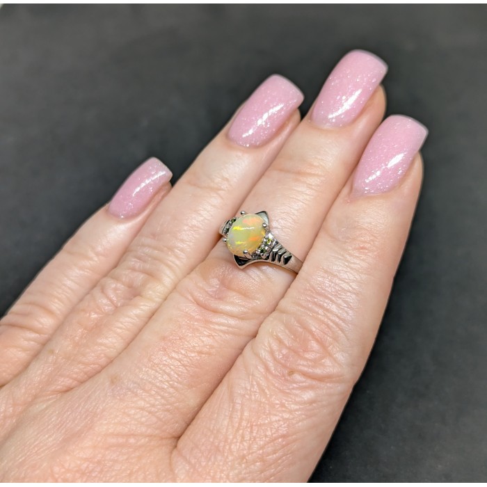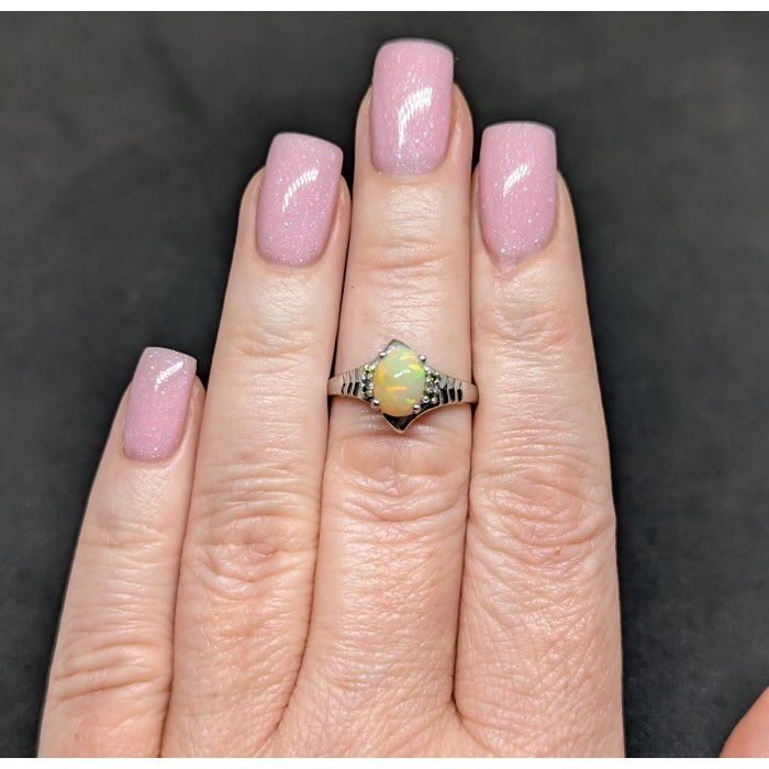 К4991Natural Fire Opal White Topaz 17.0 X 15.0 MM.Розмір 18.Вага 3.02 гр.Срібло 925 проби покрите білим золотом.Розмір каміння - 1.0 TO 8.0 X 6.0 MM.Чистота - If.Обробка - Unheated.Походження - Ethiopia...