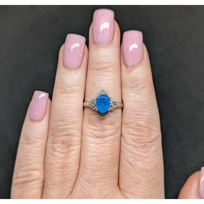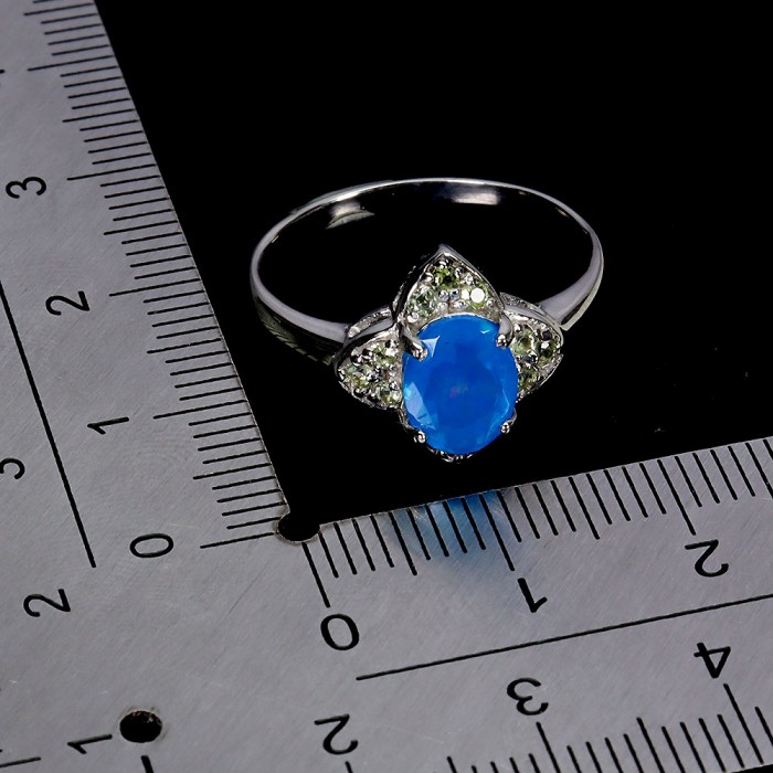 К6061Natural Blue Opal, Chrome Diopside 9.0 X 9.0 MM.Розмір 18.Вага 1.44 гр.Срібло 925 проби покрите білим золотом.Розмір каміння - 1.0 TO 6.0 X 4.0 MM.Чистота - If.Обробка - Clarity Enhanced.Походження - Ethiopia...