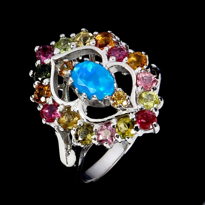 Natural Blue Opal, Sapphire, Tourmaline 19.0 X 15.0 MM.